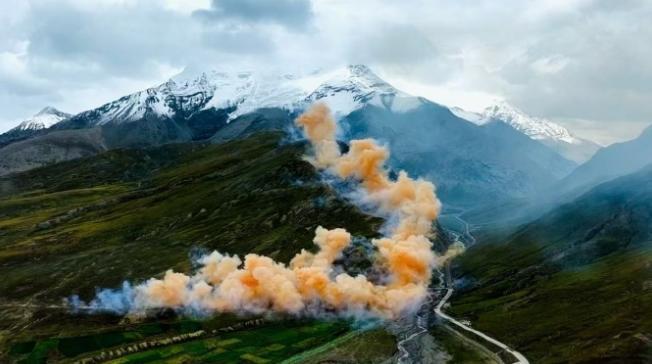 因为在雪域高原地区创作,在生态保护层面,项目团队制定了“预防一监测一恢复”的全链条方案:燃放前已将牧民牲畜转移至安全距离,并通过盐砖引导鼠兔等小型动物